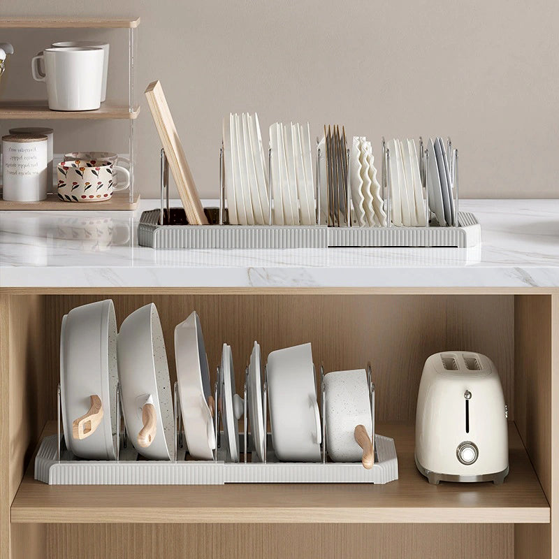 Fortune Candy 1 Piece Retractable Cabinet Organizer Rack, Pot Lid Holder for Cutting Boards, Pans, and Kitchen Storage, Gray