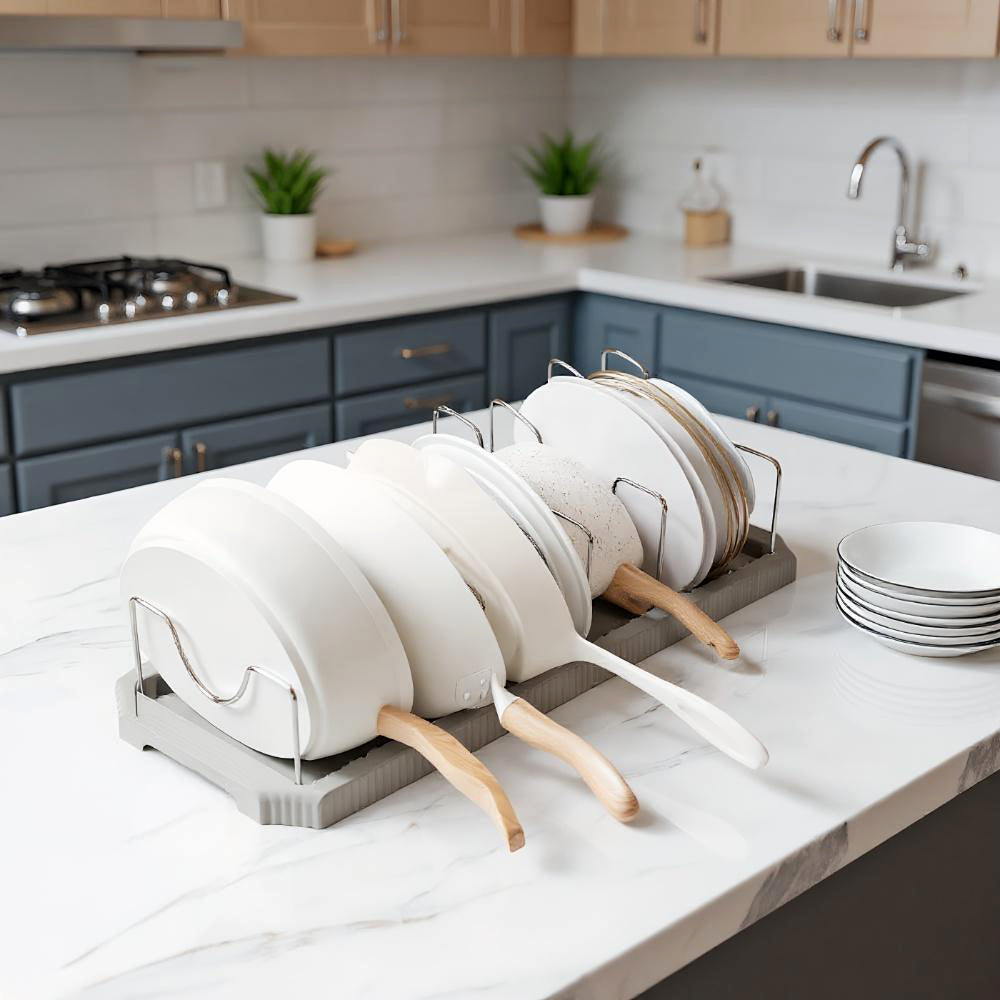The U-shaped slot design with smooth edges ensures safe handling and makes it easy to store and access pot lids without scratching your cookware.