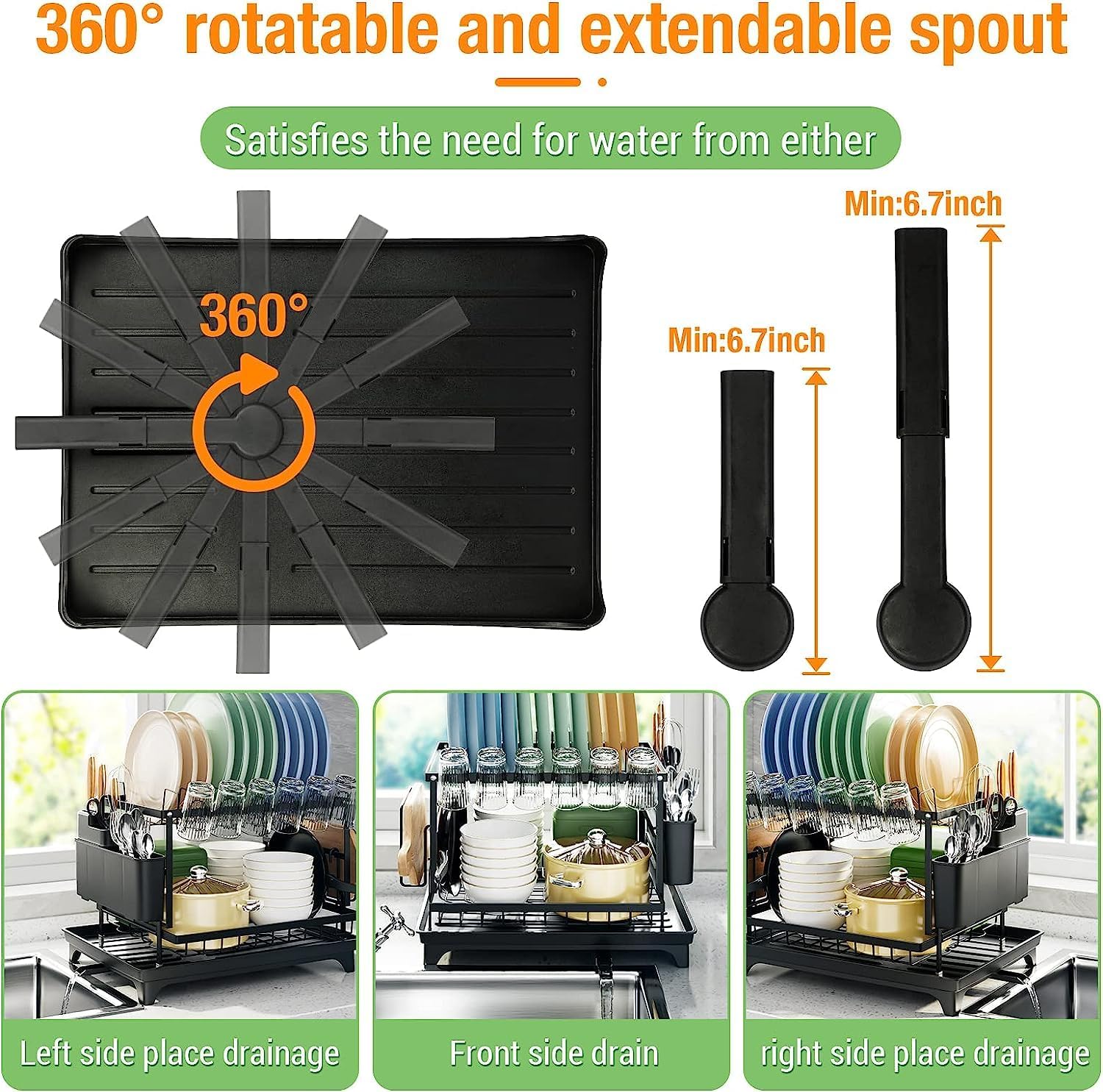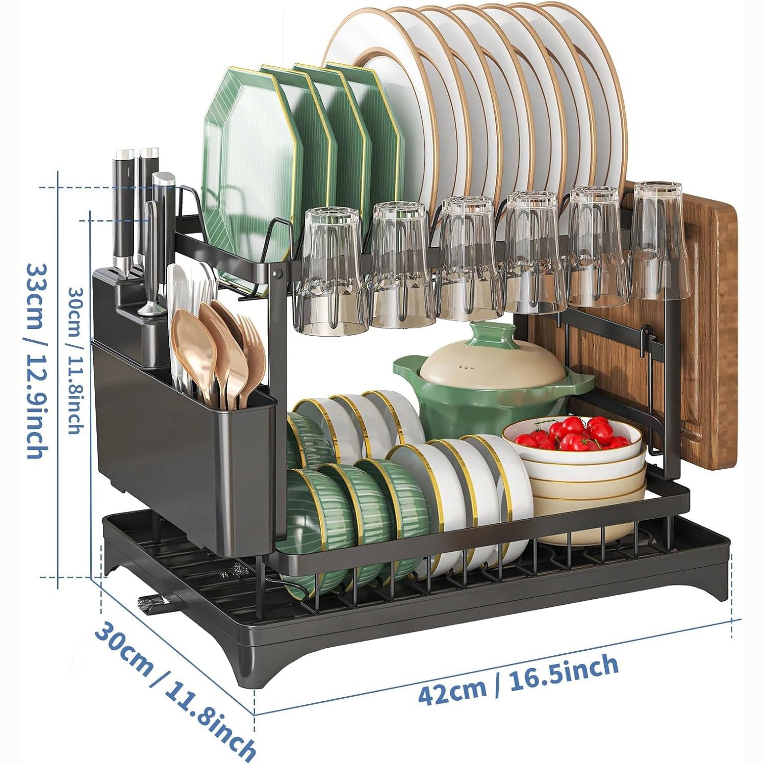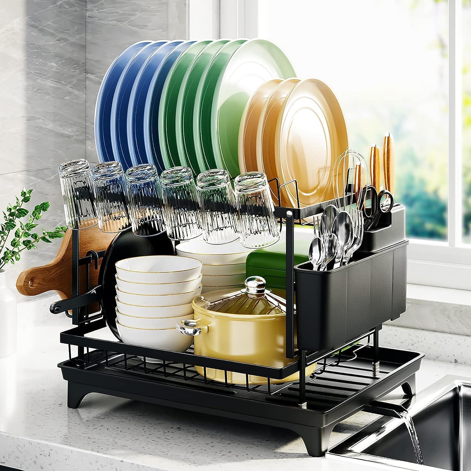 Fortune Candy 11.41'' Tall 2 Tier Dish Drying Rack, Large apacity, Black