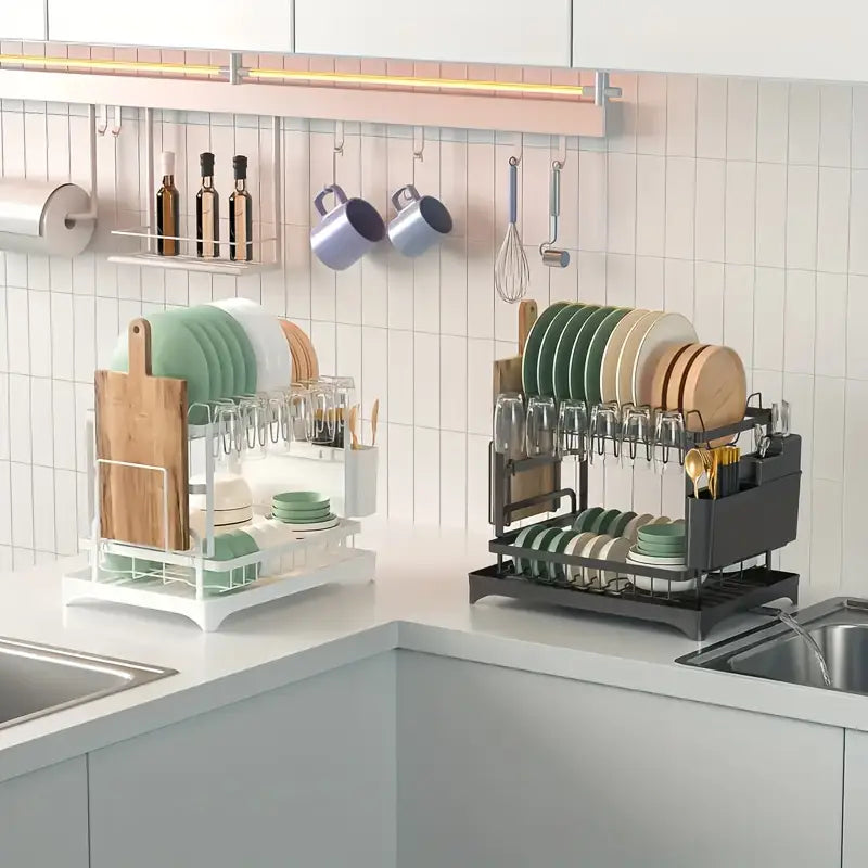 The Dish Drying Rack is a thoughtfully designed kitchen organizer that helps you save space, keep your counters dry, and make daily cleanup easier. Crafted from heavy-duty steel with a sleek black finish, this rack is not only durable but also stylish.
