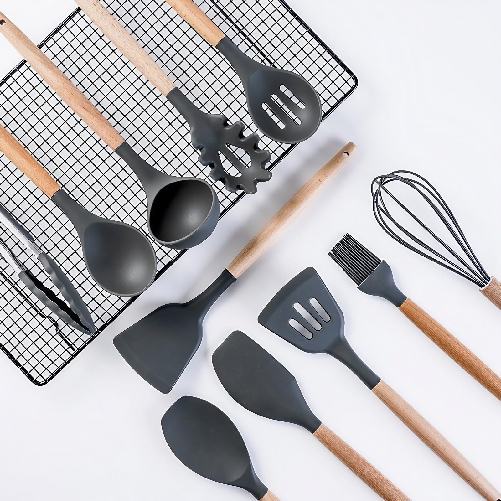 Crafted from premium food-grade silicone, these utensils are heat-resistant and gentle on non-stick cookware, preventing scratches. Each tool features an anti-scalding wooden handle for a comfortable grip and added safety, ensuring long-lasting performance.
