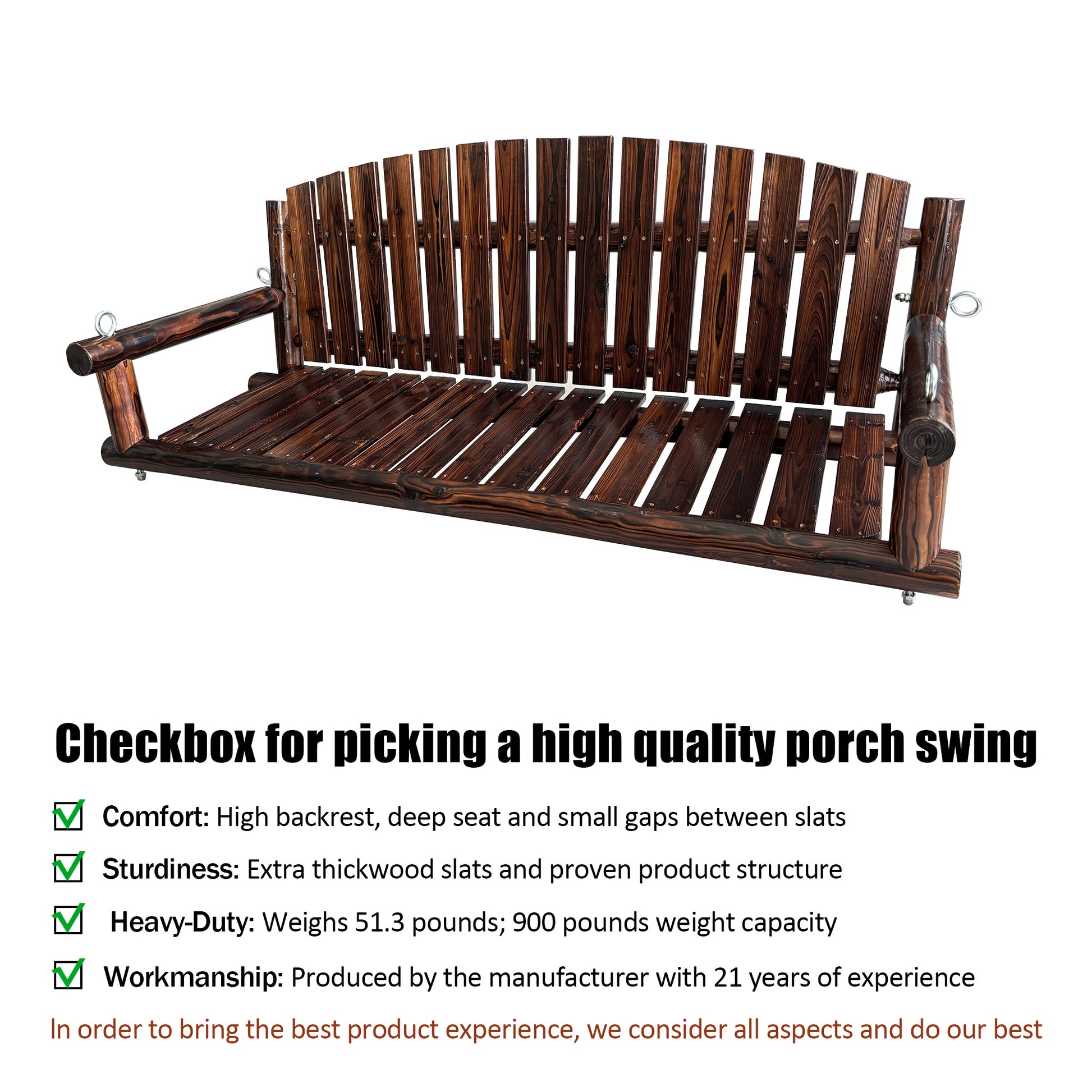 Fortune Candy 5 FT Fir Wood Porch Swing, Rustic Handcrafted Heavy-Duty Outdoor Hanging Bench, 900 LBS Capacity