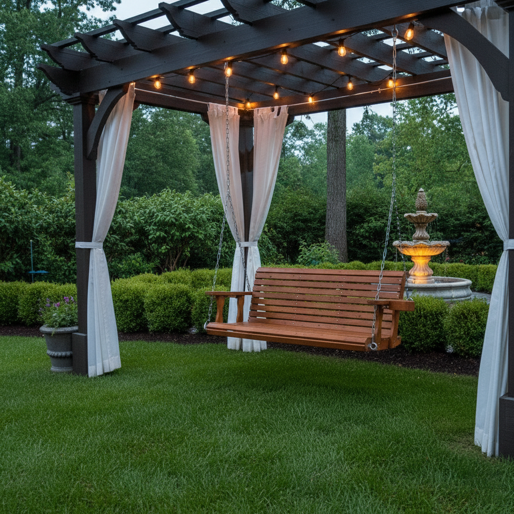Experience outdoor relaxation at its finest with our 5-foot solid fir wood swing, expertly crafted and designed for both durability and comfort. Coated in premium PU wood paint, this swing is built to withstand rain, sun, and seasonal weather changes without cracking or peeling. Equipped with heavy-duty metal chains and spring hooks, it ensures secure hanging and a gentle, safe bounce. Dual built-in cup holders add convenience, so your drinks stay steady while you sway, read, or simply enjoy your porch, patio, or garden view. Assembly is straightforward—just attach the chains and hooks to a strong support, and your swing is ready for long-lasting outdoor enjoyment.