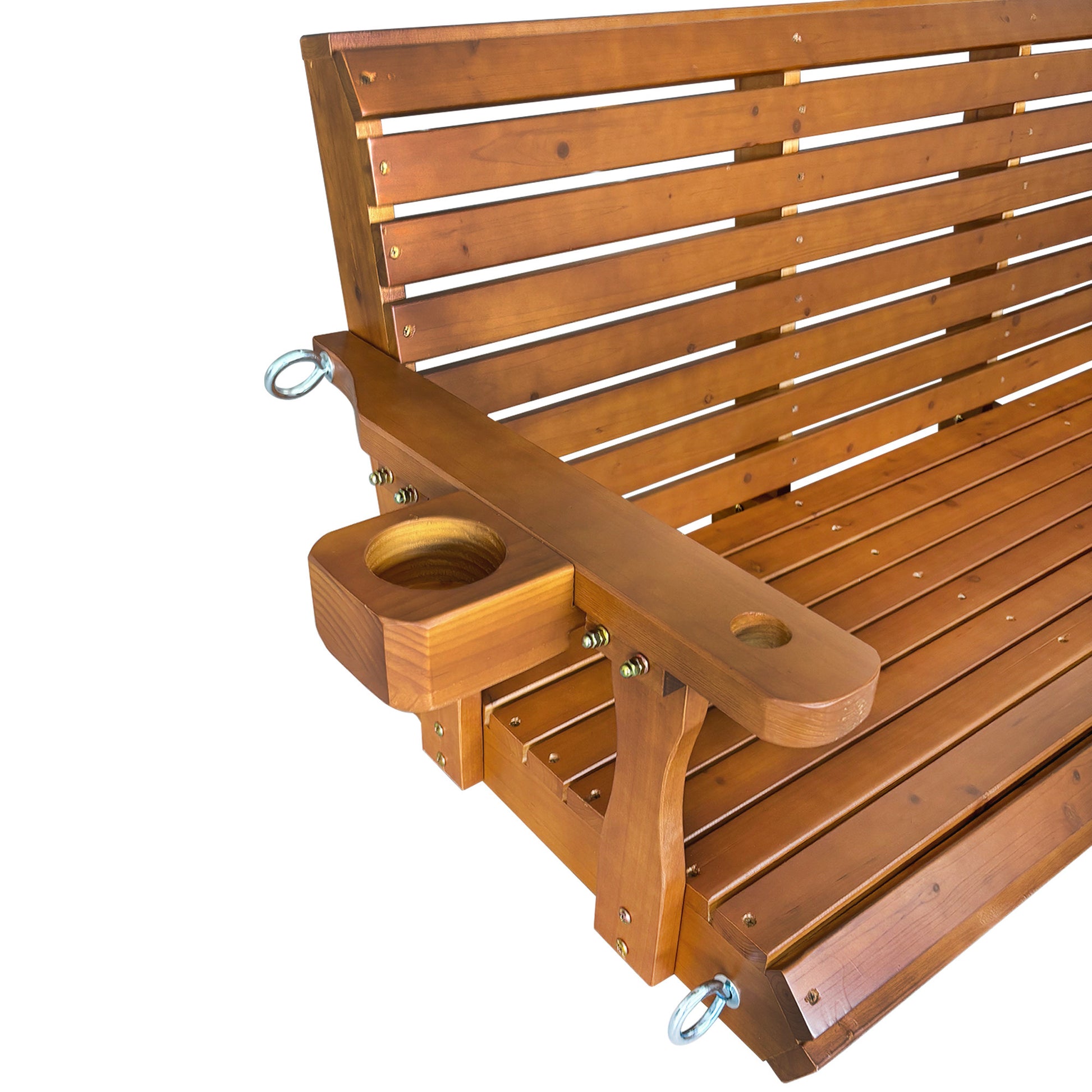 Fortune Candy 5 ft. Wooden Porch Swing 2-Seater for Outdoor Patio Garden Yard (Cedar Tone)