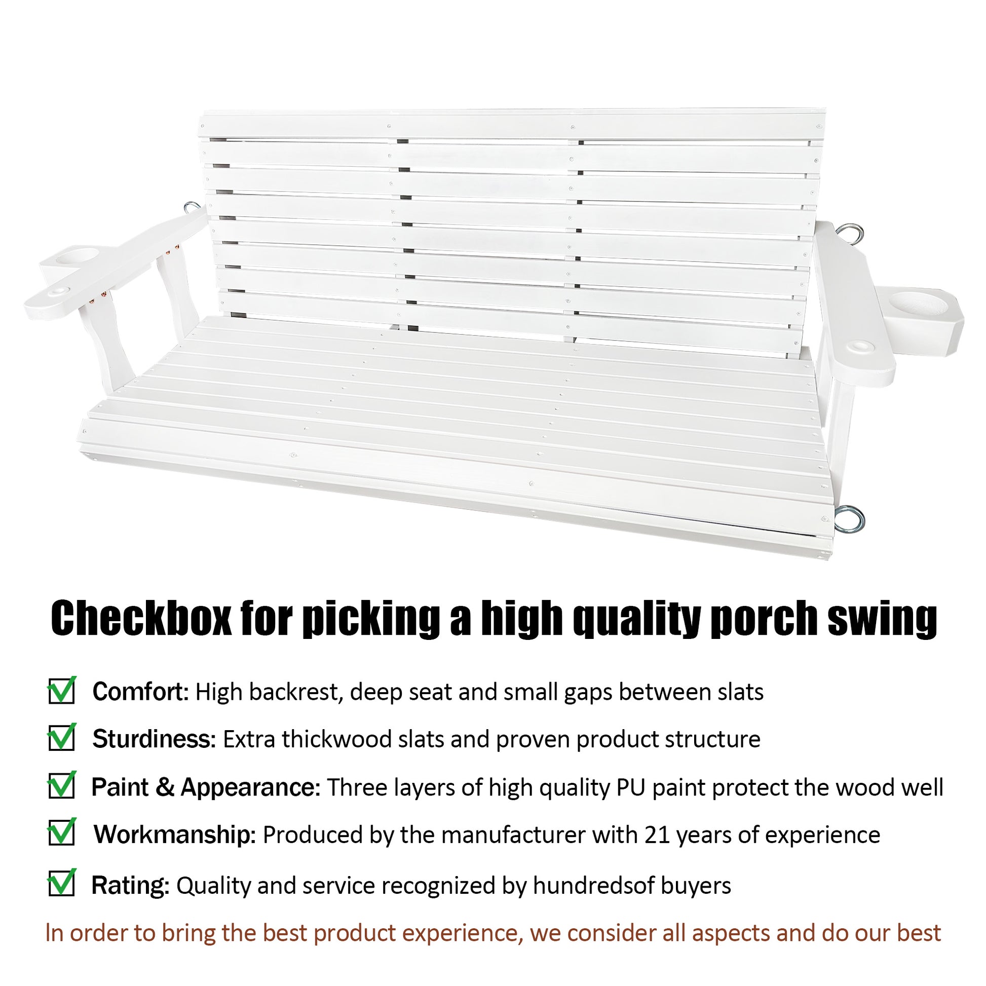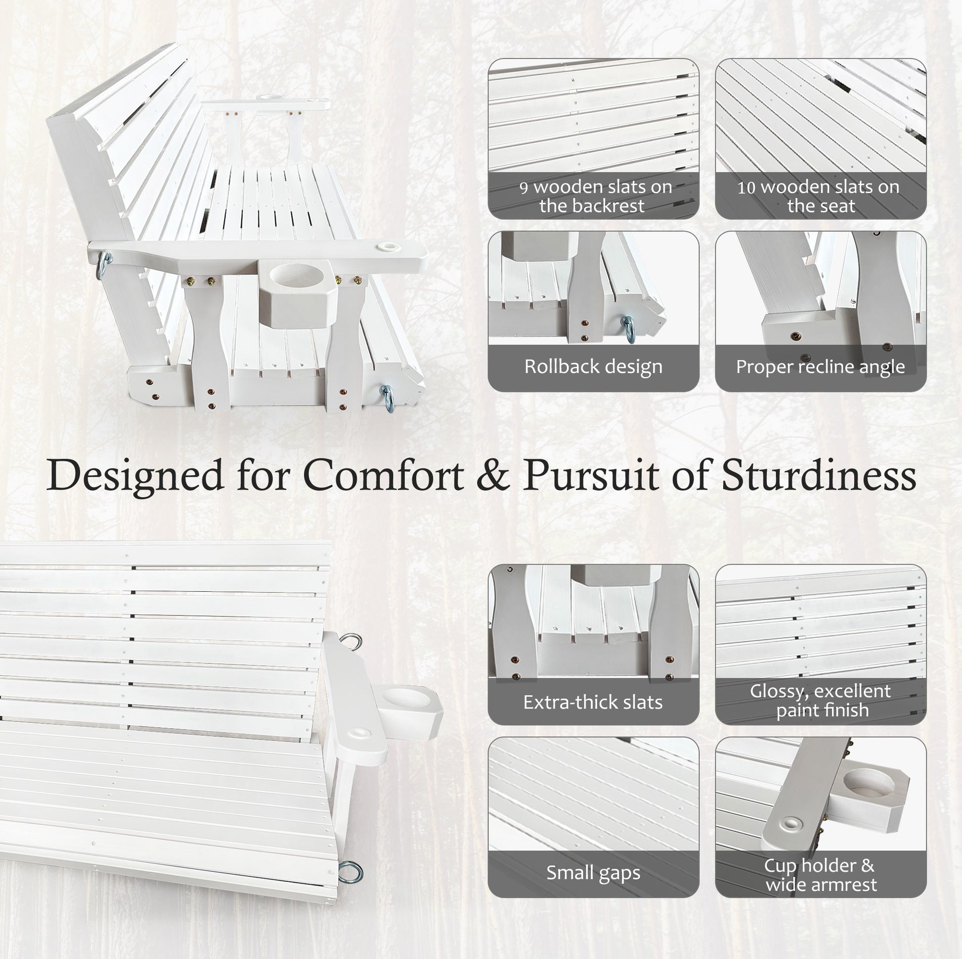 Fortune Candy 5 ft. Wooden Porch Swing 2-Seater for Outdoor Patio Garden Yard (White)
