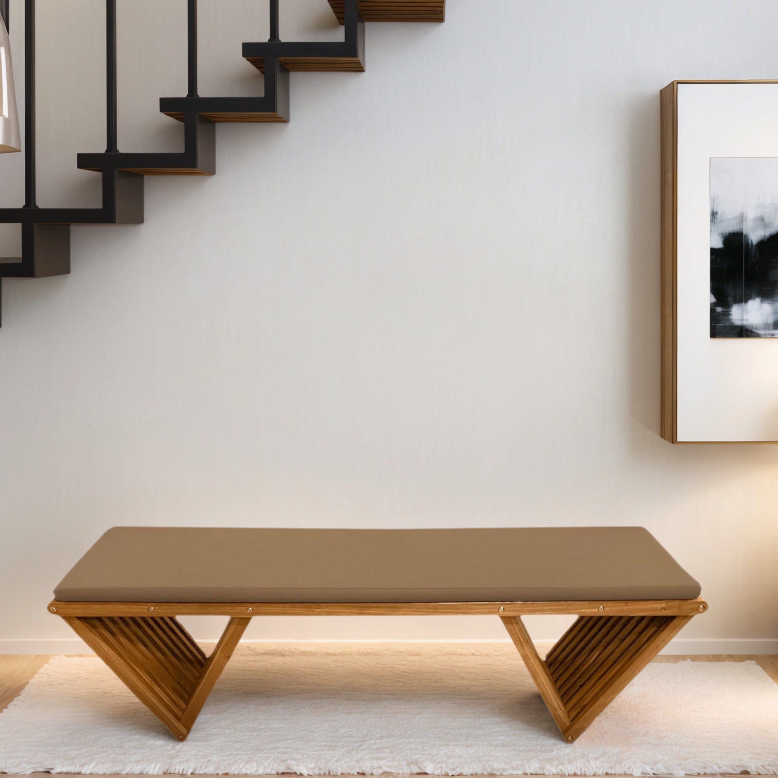 𝐏𝐚𝐜𝐤𝐚𝐠𝐞 𝐈𝐧𝐜𝐥𝐮𝐝𝐞𝐬: Three wooden parts for the bench, cushion, hardware pack, tools for assembly, A4-size instruction manual.