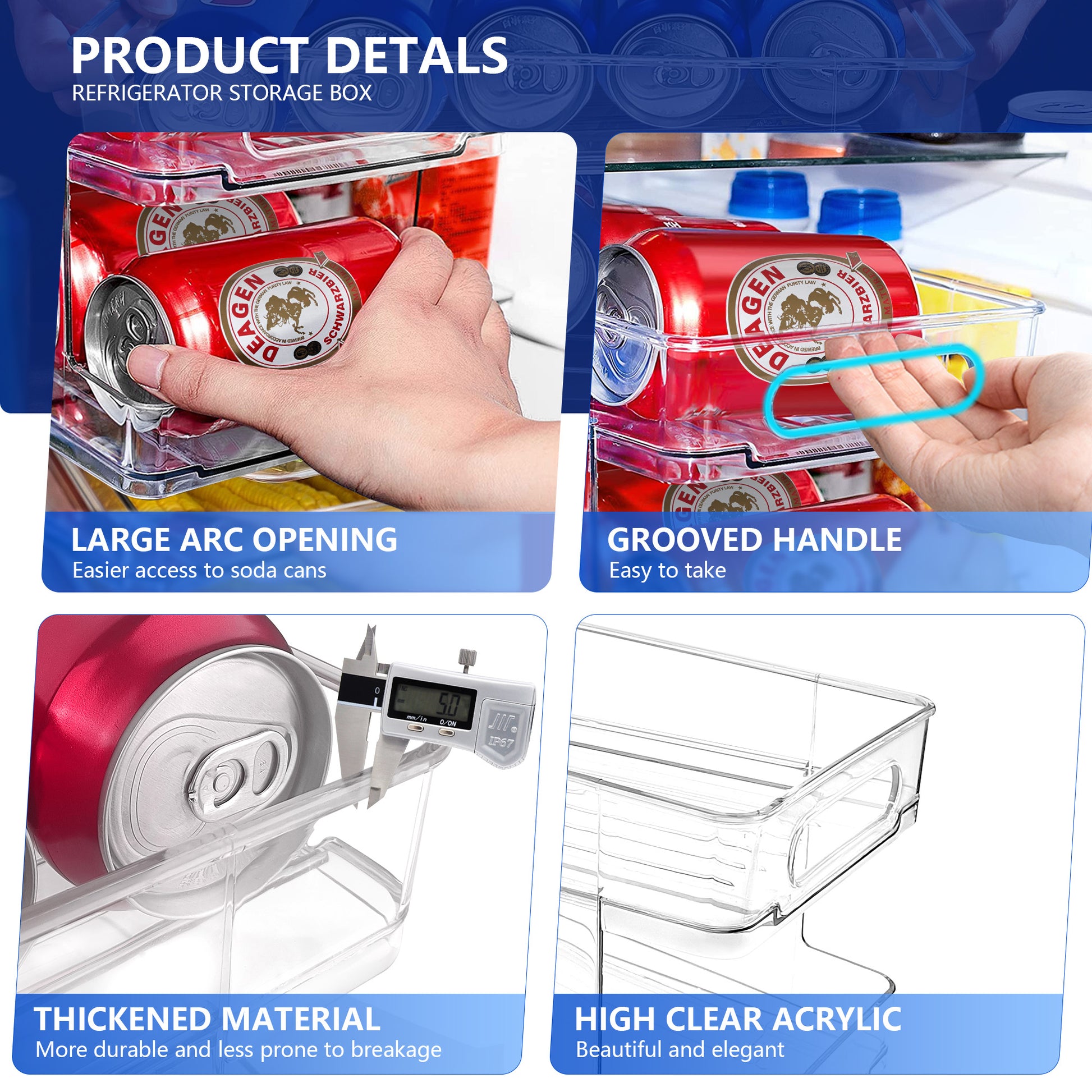 Automatic Refill: Cans roll forward automatically after one is taken, ensuring easy access without reaching into the fridge.